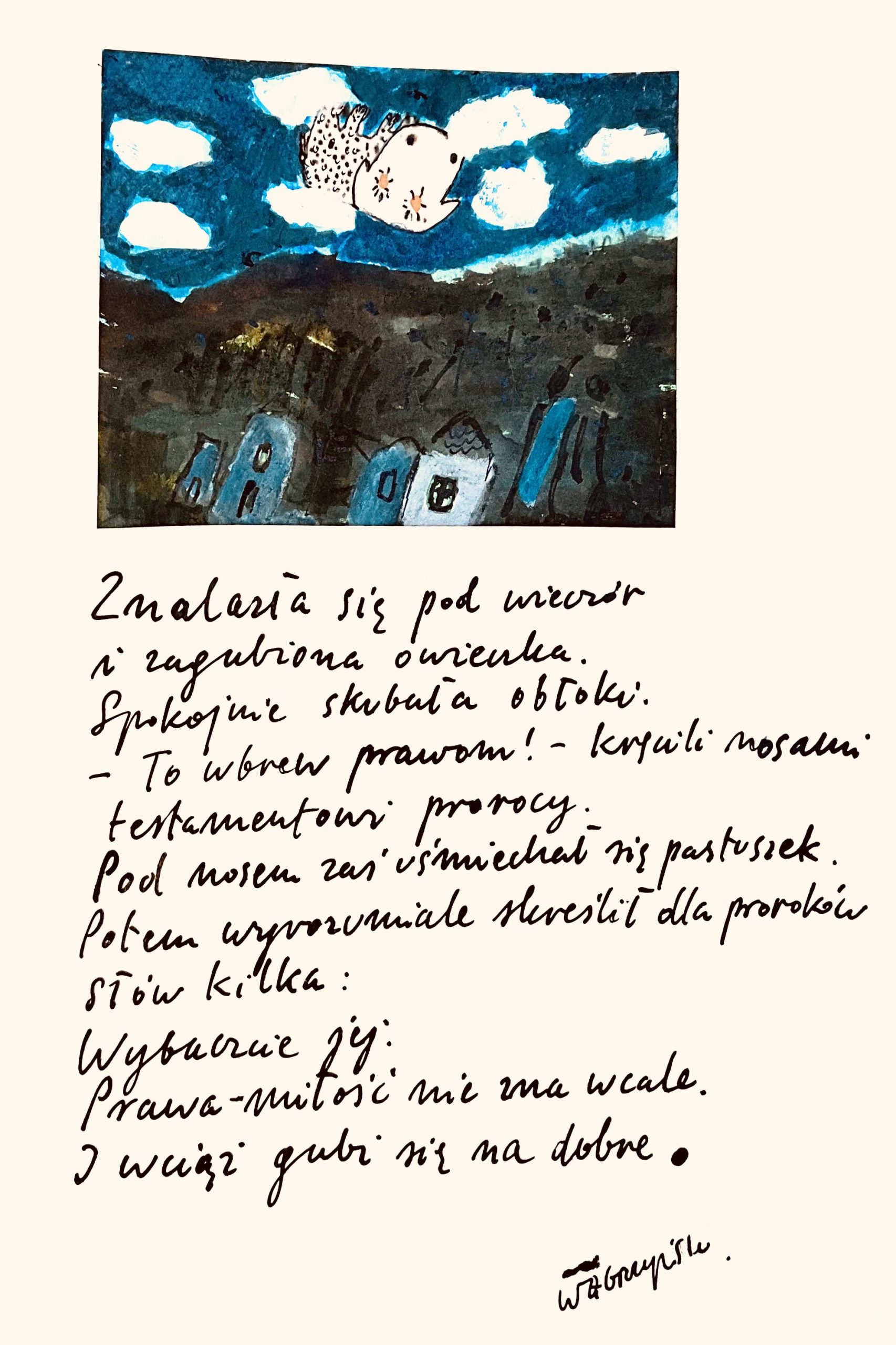 Znalazła się pod wieczór i zagubiona owieczka. Spokojnie skubała obłoki.