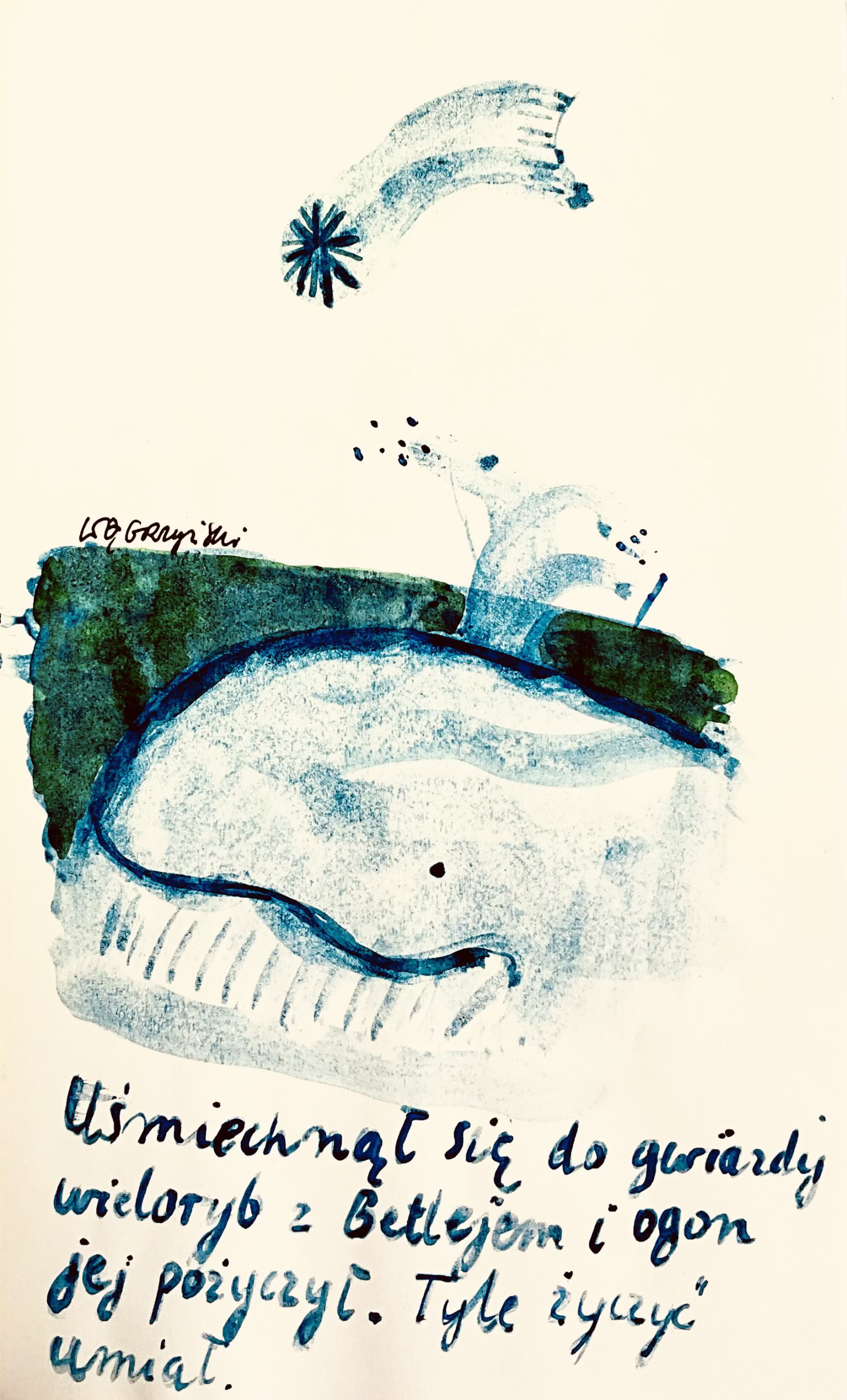 Wieloryb 24 grudnia 2025 Wojciech Węgrzyński * Uśmiechnął się do gwiazdy wieloryb z Betlejem i ogon jej pożyczył. Tyle życzyć umiał.